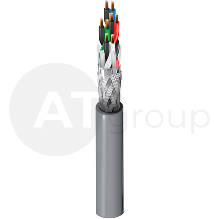 Кабель управления, для передачи данных RS-485, витая структура пары, низкоемкостной, структура: 4х2x0.22 мм2 (1х7*0.20) AWG 24, многожильная луженая медь, диэлектрик проводника (PE), общий экран - алюминиевый Beldfoil® + плетеный из леженой меди (100%+90%), t (-30°C +80°C), внеш. диаметр 9.9 мм, внешняя оболочка (PVC); цвет: хром.
